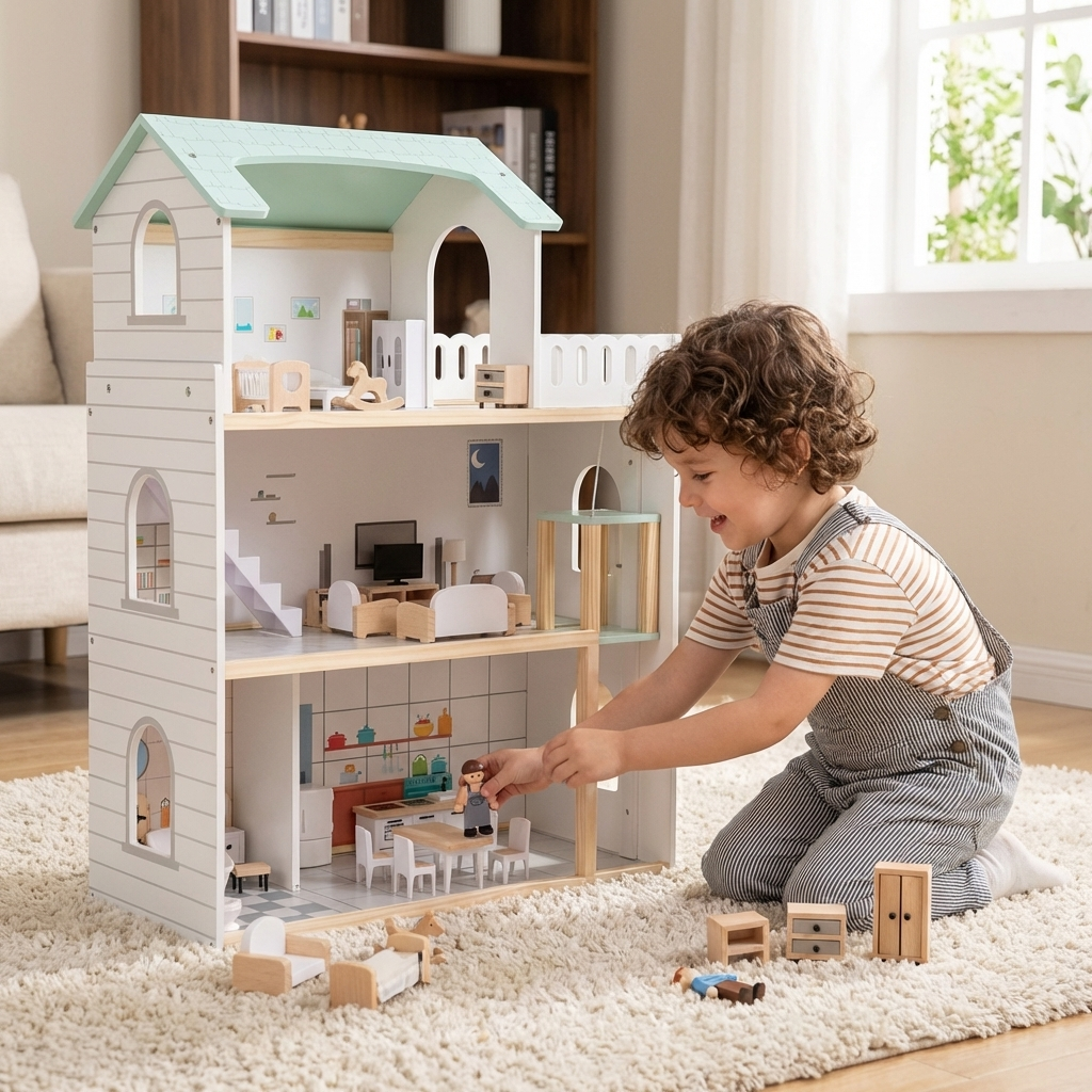 A simple, beautifully crafted wooden doll house is a stage for endless imagination. It supports social-emotional learning as children act out daily routines. Unlike plastic versions, a wooden house fits beautifully into any home decor.